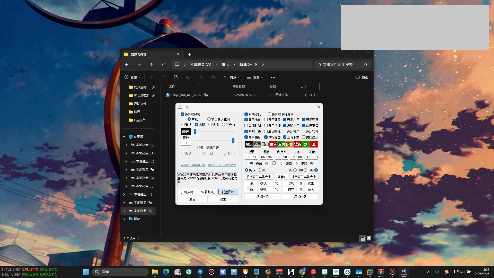 这是一款专业的任务栏系统监控工具,主要特色包括: