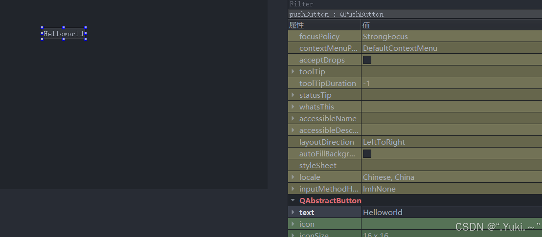 这个按钮在生成的代码里,会变成一个变量 ,变量名就等于刚才的objectName------比如按钮的objectName是pushButton,代码里对应的变量就是ui->pushButton。
