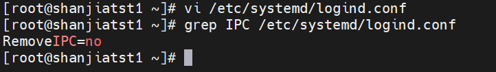 systemd-logind服务中引入的一个特性,是当一个用户退出系统后,会删除所有有关的IPC对象。该特性由/etc/systemd/logind.conf文件中的RemoveIPC参数控制。某些操作系统会默认打开,会造成程序信号丢失等问题(只有redhat7及以上和一些特殊的国产Linux的版本需要修改,改之前可先查看此项是否为默认yes)。设置RemoveIPC=no。 设置后重启服务: