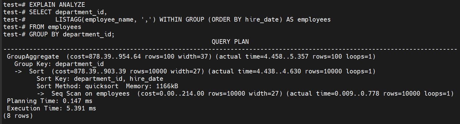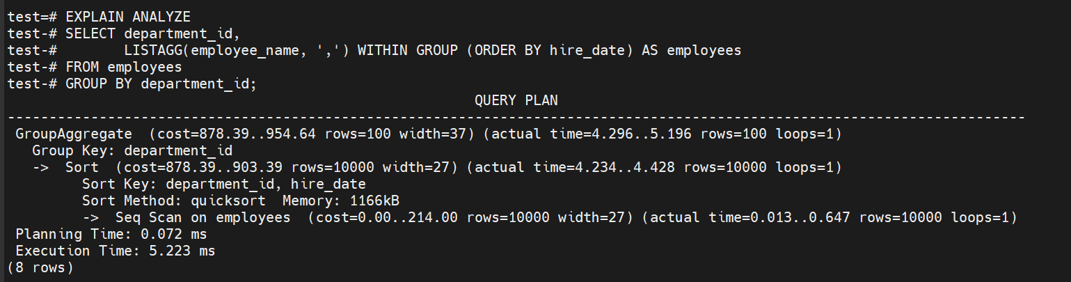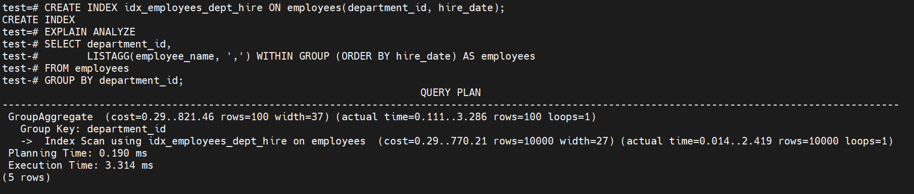 LISTAGG(employee_name, ',') WITHIN GROUP (ORDER BY hire_date) AS employees