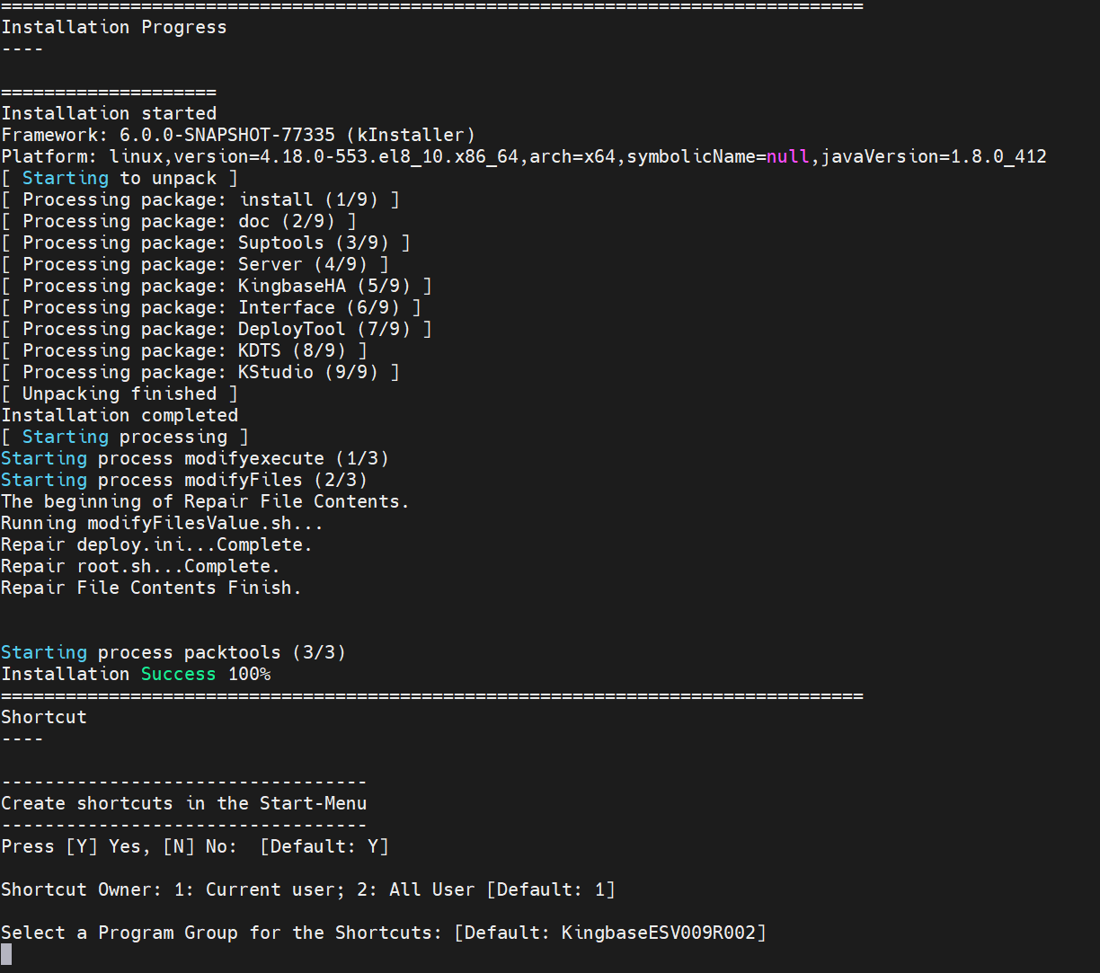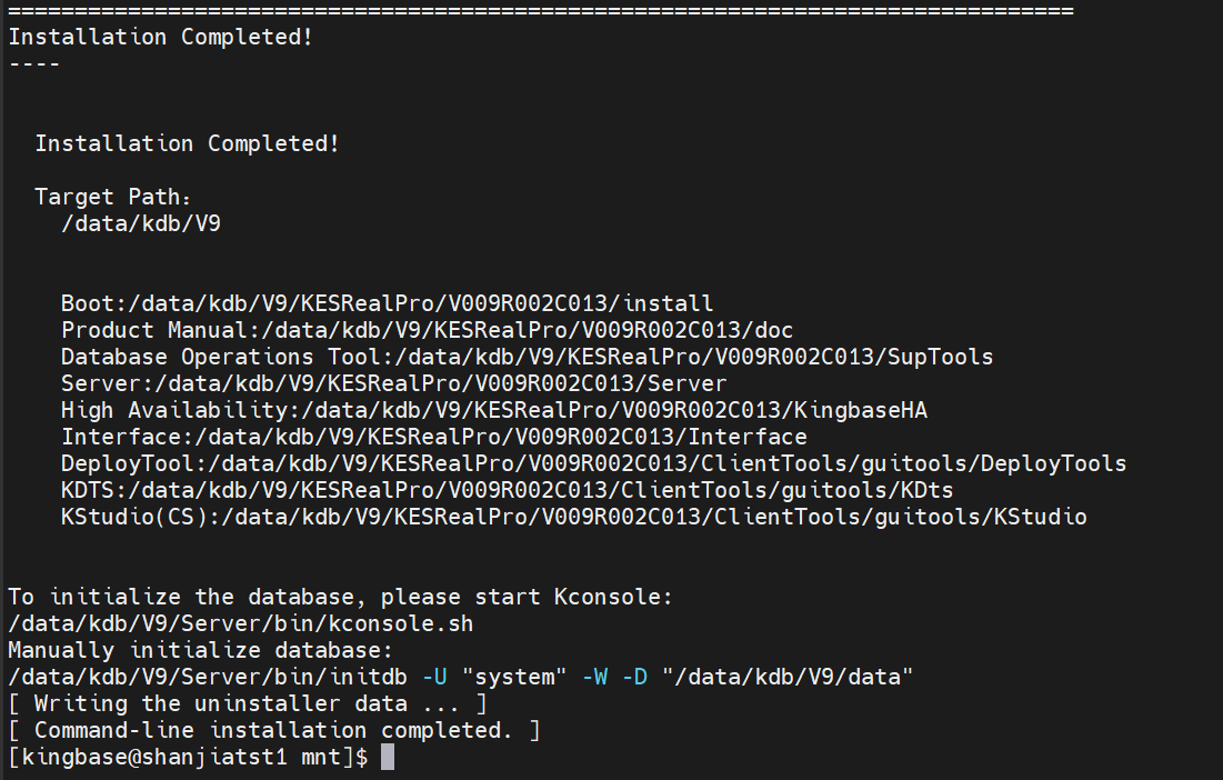 切换至 kingbase 用户下,在 /mnt 目录下使用命令行安装数据库程序,依次执行以下命令安装 DM 数据库