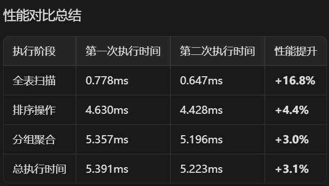 优化空间:当前数据量下性能已经很好,如数据量增大可考虑添加索引