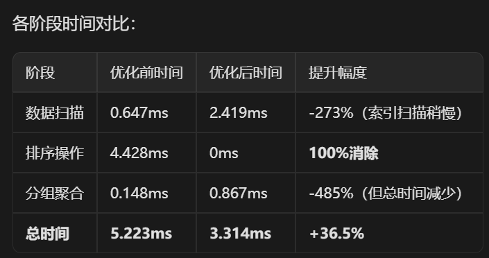 通过创建合适的复合索引,成功消除了排序这一主要性能瓶颈,