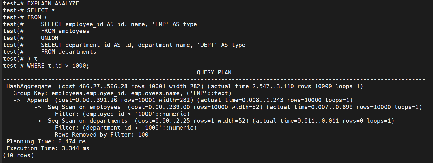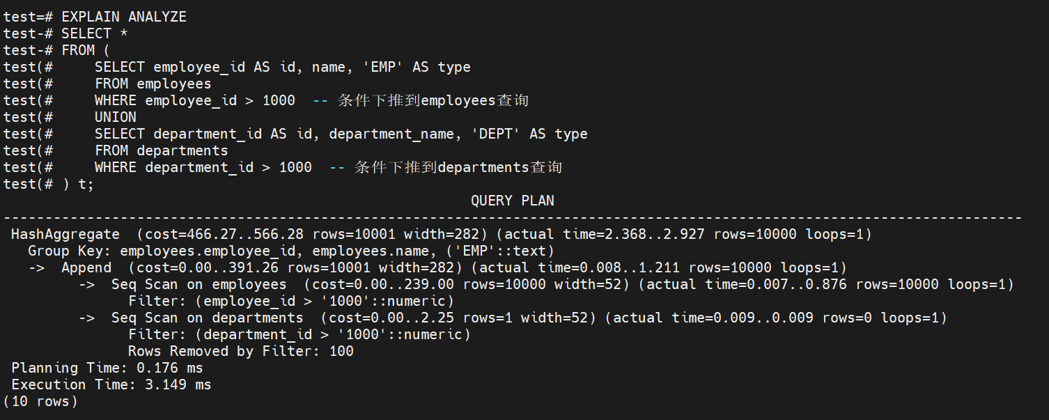 WHERE employee_id > 1000 -- 条件下推到employees查询