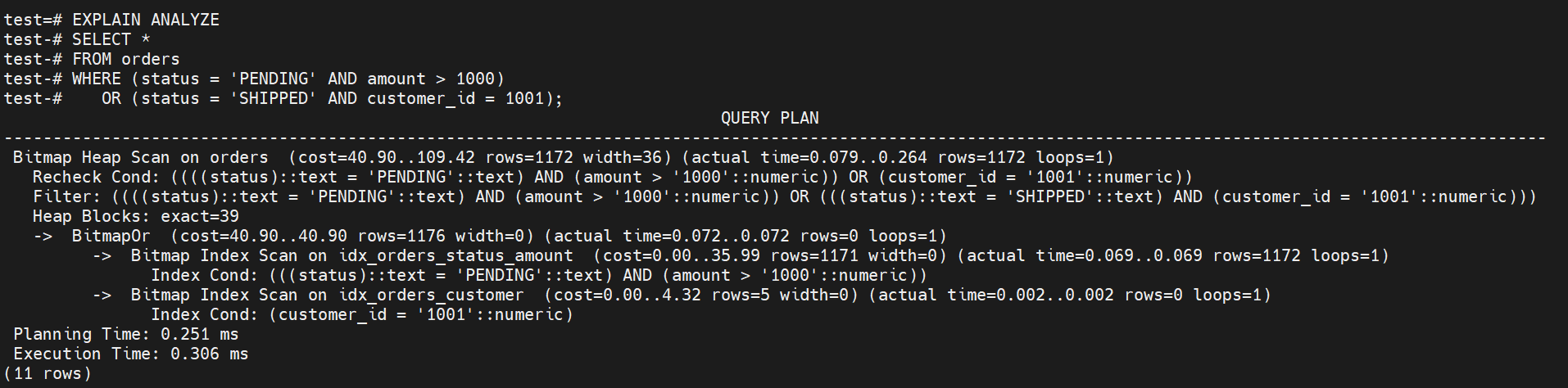 订单查询系统需要筛选"待处理大额订单"或"特定客户已发货订单"。原始OR条件导致无法有效使用组合索引。