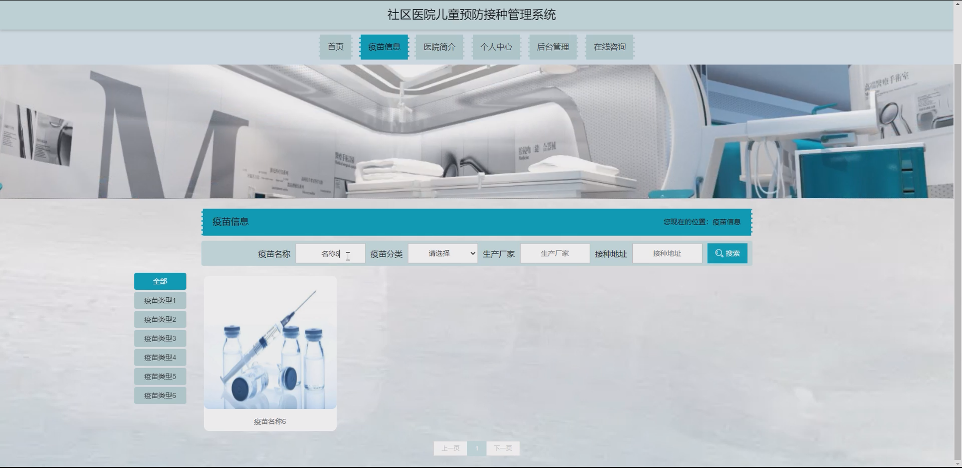疫苗类型模块负责管理疫苗的分类信息,如一类疫苗、二类疫苗、灭活疫苗、减毒疫苗等;疫苗信息模块负责维护具体疫苗的详细信息,包括疫苗名称、生产厂家、规格、效期、适用年龄、接种剂次等,支持疫苗信息的新增、查询、修改和失效标记。