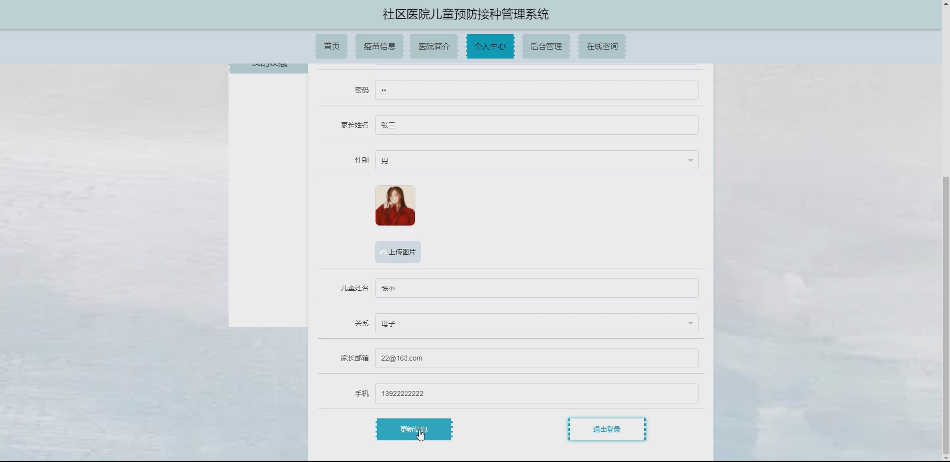 该模块关联儿童信息,用于管理家长的基础信息和账号信息。家长可通过账号登录系统,查询儿童接种信息、进行疫苗预约;护士可维护家长的联系方式等信息,便于接种提醒的精准推送。