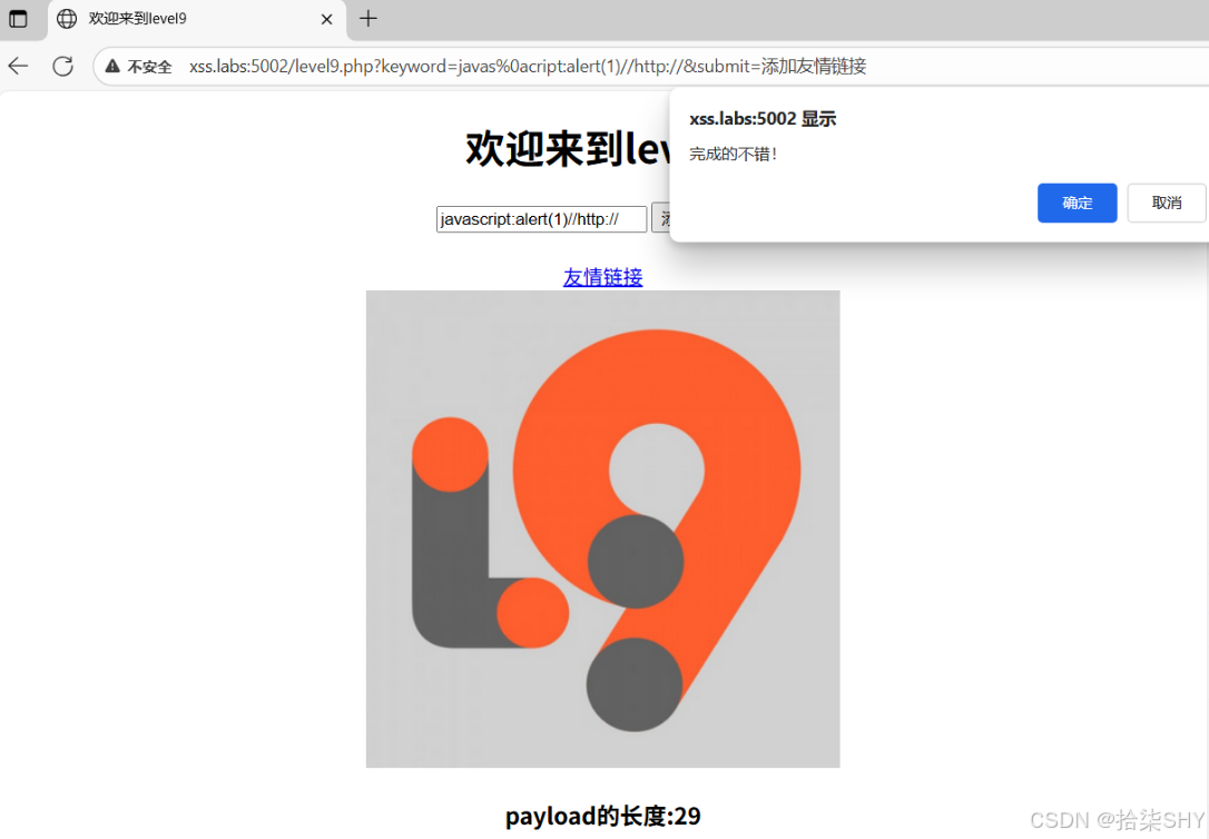 沿用第八关的payload,发现不行,查看源码,显示链接不合法
