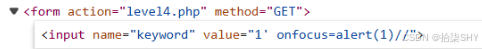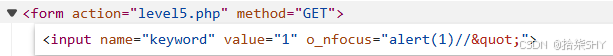 沿用第四关的payload,发现不行,查看源码,发现on被过滤,这里过滤的是on并不是onfocus这个事件,因为用onclick等on事件都不行