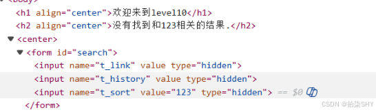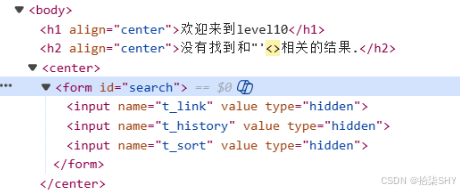 输入测试语句,查看源码,发现并没有回显,但是发现了三个input输入框但是被隐藏了