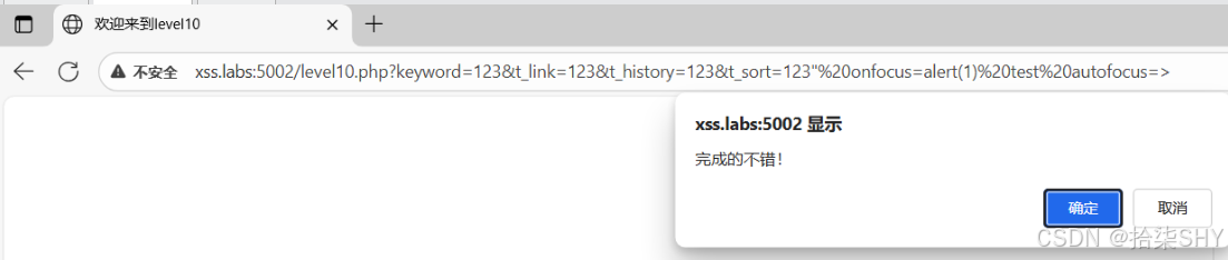 xss-labs靶场前十关比较贴合现代web安全漏洞场景,因此只将1-10关列出