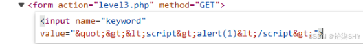 沿用第二关的payload发现不行,f12查看源码发现他将<>和"实体化编码了