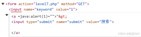 沿用第六关的payload,发现不行,查看源码发现将我们输入的直接放到了a标签的href属性中,并且将script过滤了,大小写绕过不行