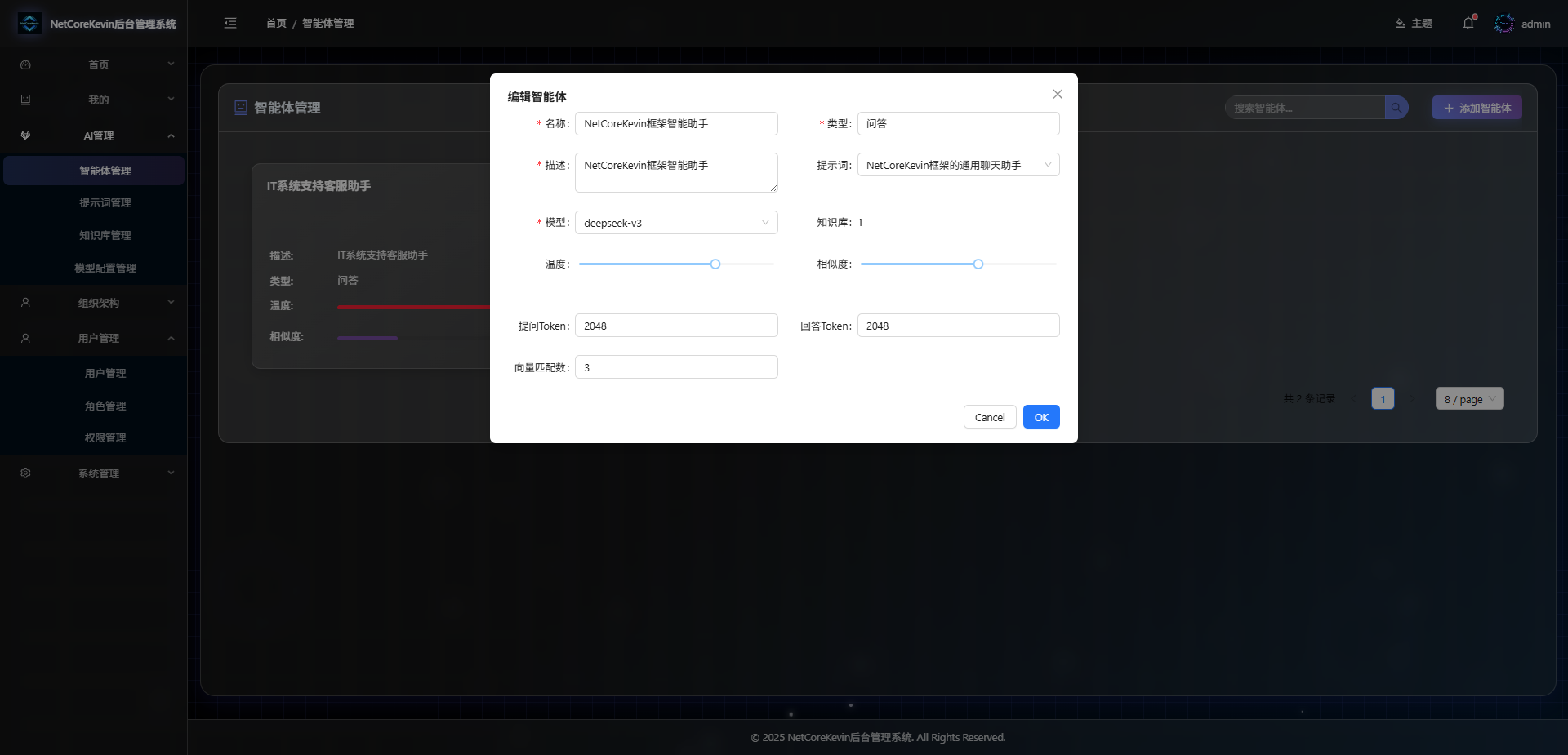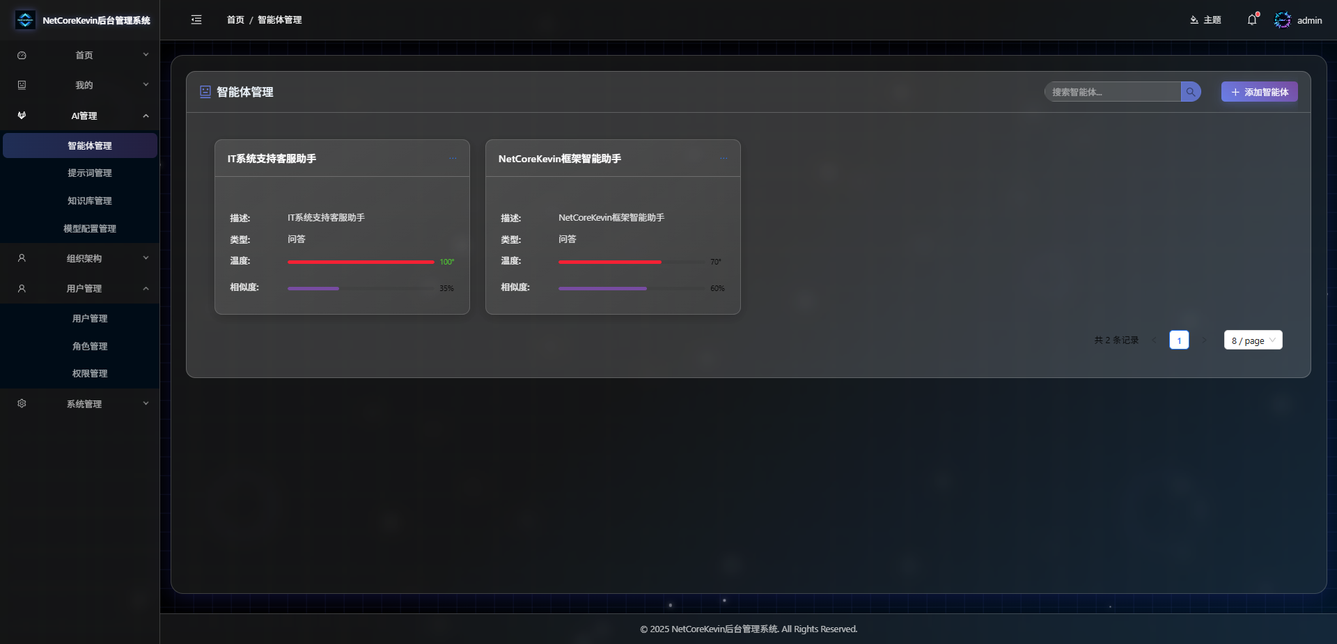 基于NET搭建-AI智能体-现代化Saas企业级前后端分离架构-开启智能应用的无限可能:前端Vue3、IDS4单点登录、多缓存、自动任务、分布式、一库多租户、日志、授权和鉴权、CAP集成事件、SignalR、领域事件、ESL、MCP协议服务、IOC模块化注入、Cors、Quartz自动任务、多短信集成、AI、AgentFramework智能体、AISemanticKernel集成、RAG检索增强