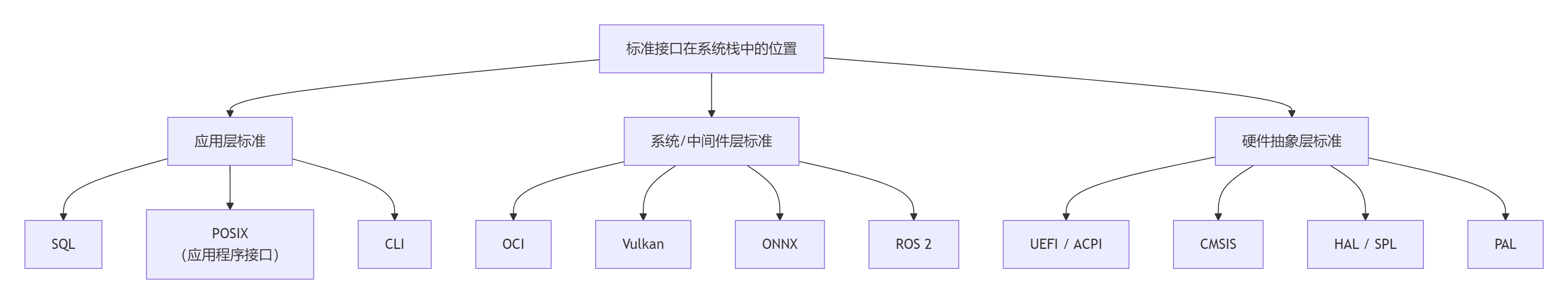 | POSIX | IEEE / The Open Group | 应用软件在不同操作系统间的可移植性 | 应用 <--> 操作系统 | |