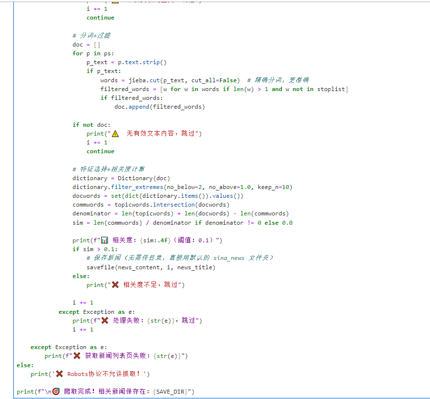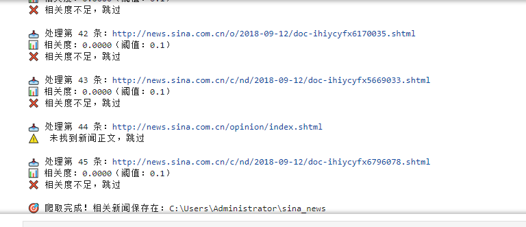 1.在新浪新闻网页爬虫,进行相应信息主题新闻信息采集与保存,并计算关联度、过滤出与主题相关的页面进行保存。