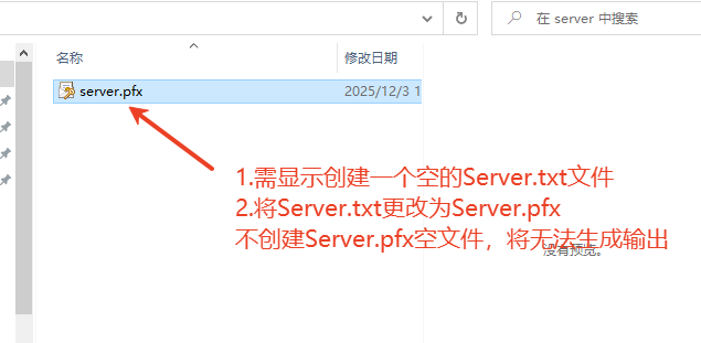 1.创建服务器生成证书地址时,需要先创建Server.pfx空文件