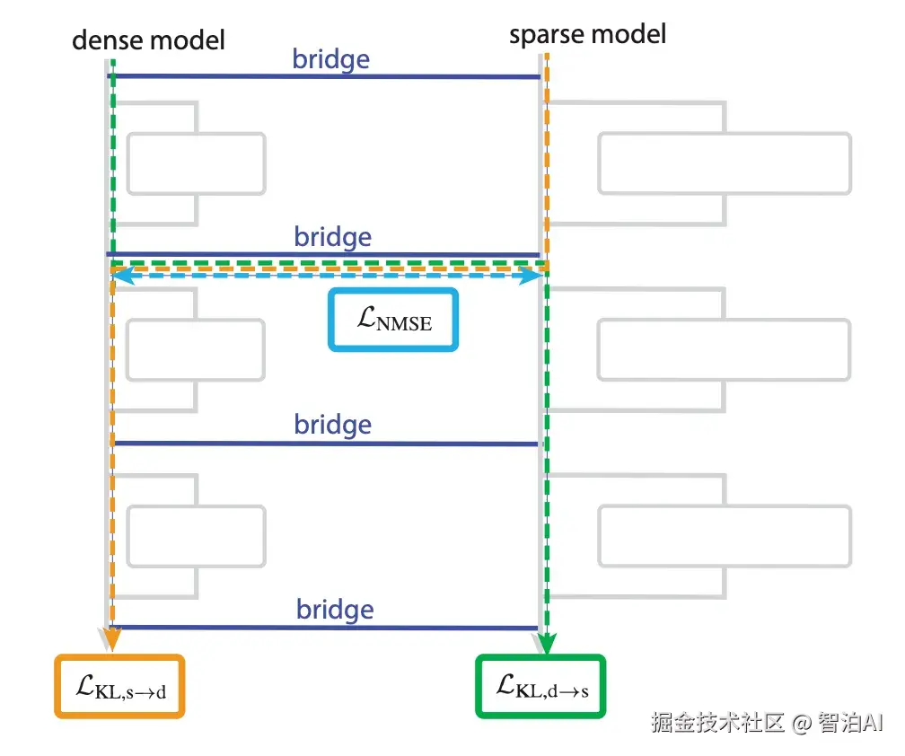 图4. Bridge 使用线性映射对齐 sparse 与 dense 的中间激活,使得两者可以互相转换并保持混合路径的性能。