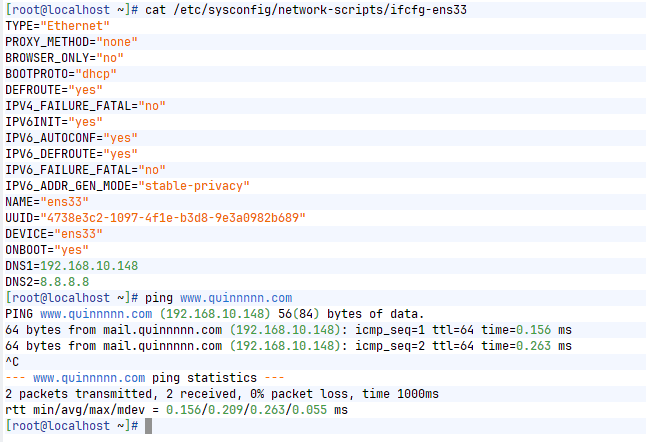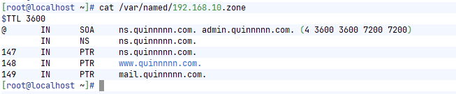 mail IN A 192.168.10.148 #访问mail.quinnnnn.com IP为192.168.10.148