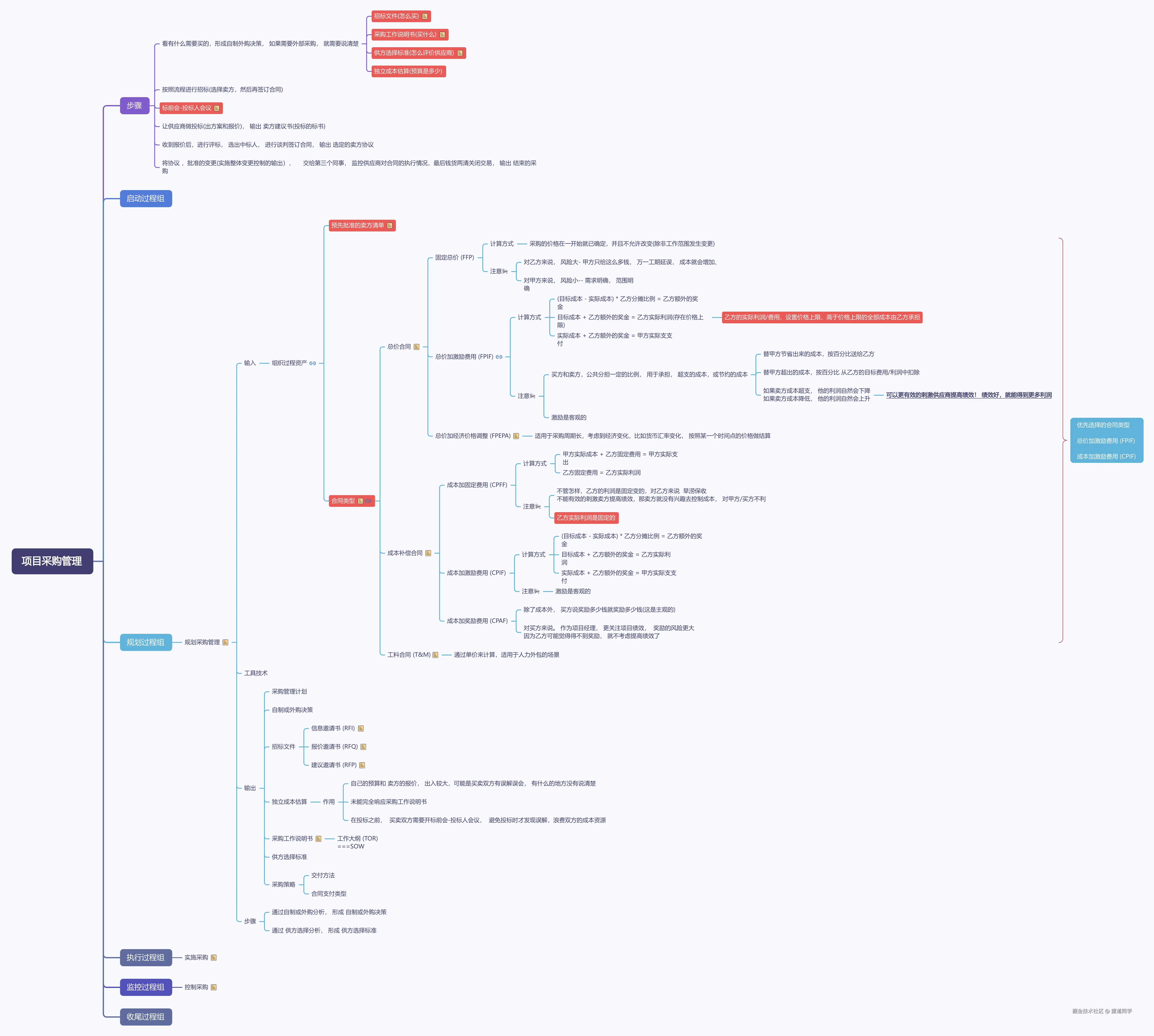 详解从规划采购、实施采购到控制采购的全过程,重点掌握合同类型 (总价合同、成本补偿合同、工料合同)、供方选择标准 、索赔管理 及采购工作说明书(SOW) 等核心概念,是PMP计算题与软考案例分析的常考模块。