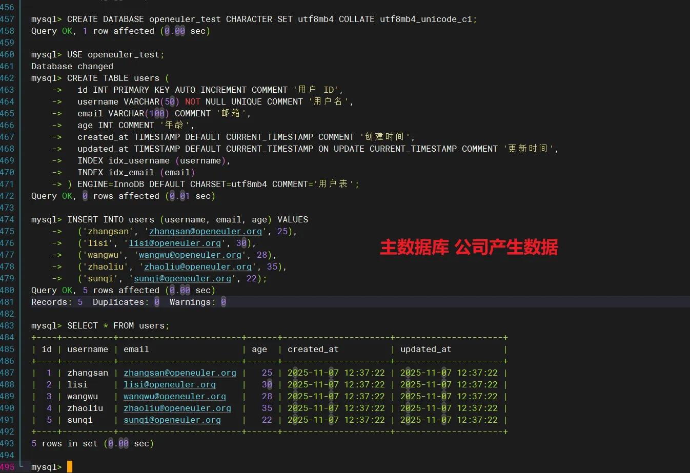openEuler 作为开源操作系统,凭借其卓越的稳定性、安全性和性能表现,正在成为企业级应用的首选平台。本文基于 openEuler 25.09 最新版本,深入探索在该系统上部署 MySQL 5.7 主从复制架构的完整实践,涵盖环境准备、主从配置、数据同步验证以及性能优化等关键环节。