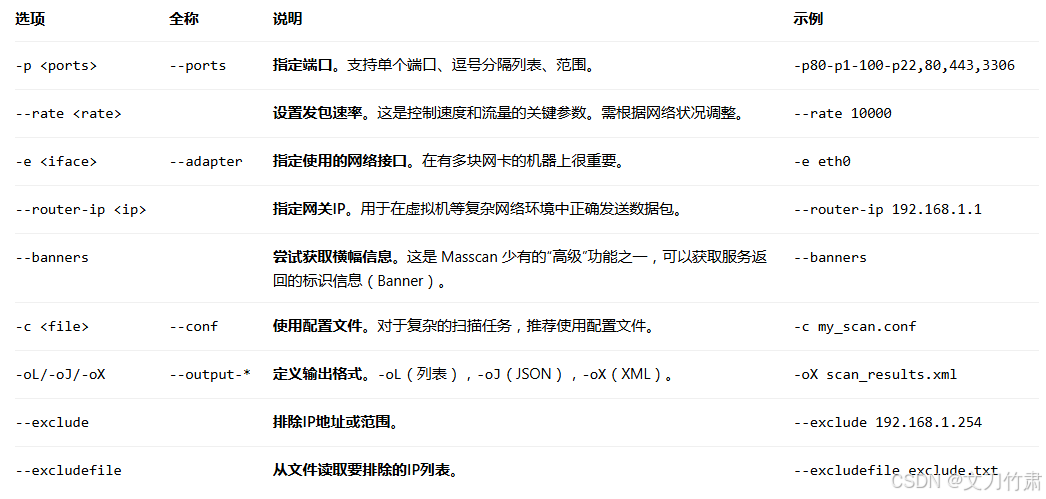 Masscan 是一款超高速的互联网规模端口扫描器。由 Robert Graham 开发,其核心设计目标是"尽可能快地扫描整个互联网"。
