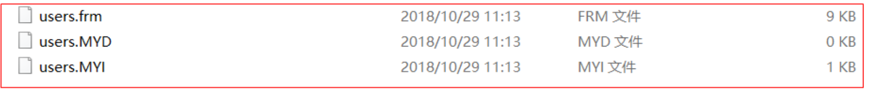 不同的存储引擎,创建表的文件不一样。其中users 表存储引擎是 MyISAM ,在数据目中有三个不同的文件,分别是: