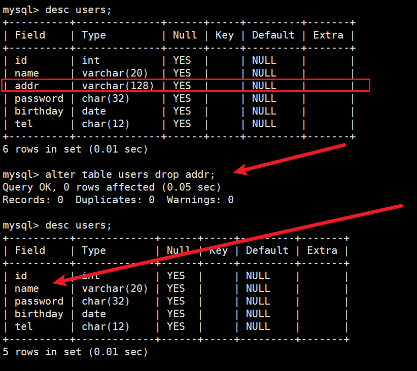 我们将addr列删除。