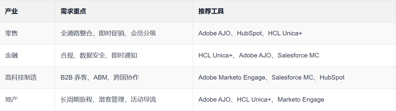 这张图表能帮助企业快速对应产业需求与工具特点,避免因盲目跟风而导入不适合的解决方案。