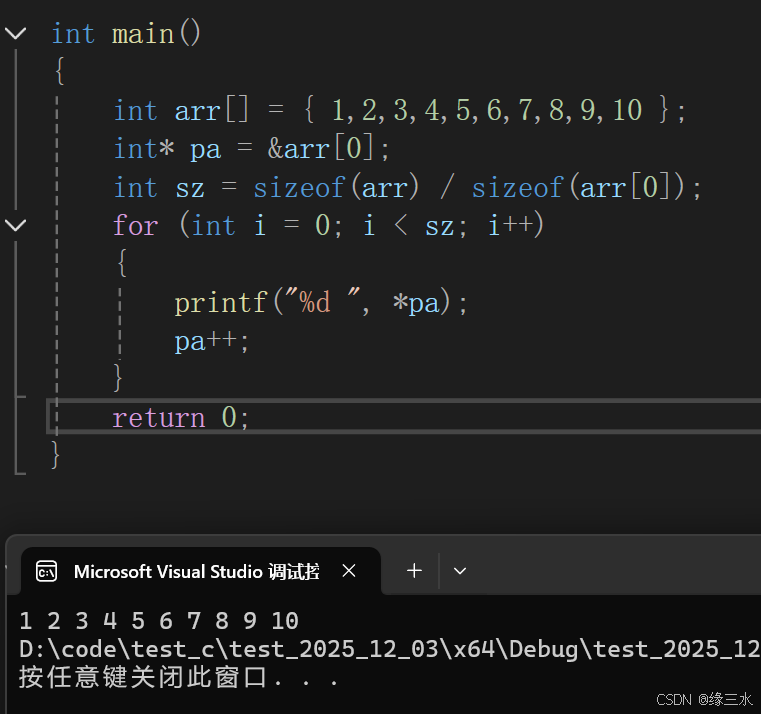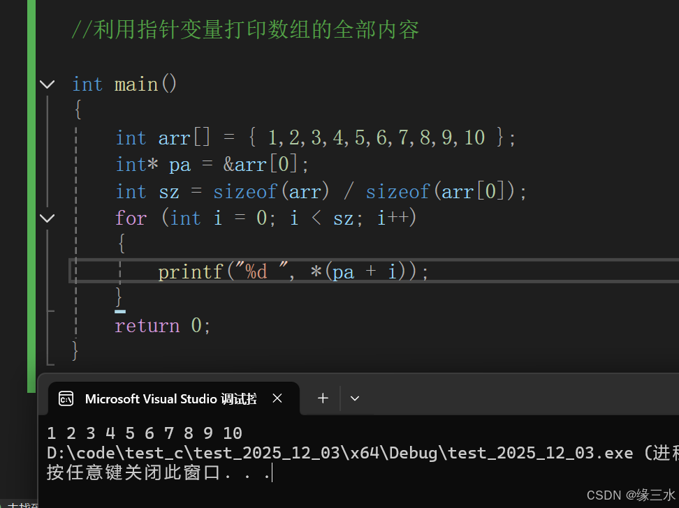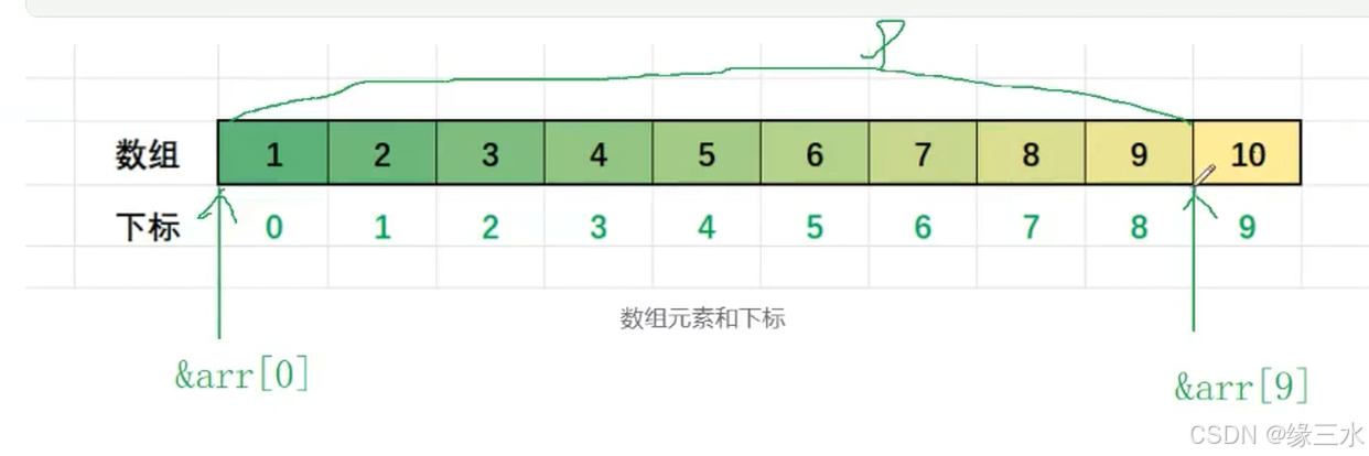 根据数组的内容在内存中是连续存放 的,因此只需要得到第一个内容arr[0]的地址,就能利用指针变量±整数,一个一个的得到数组后的内容