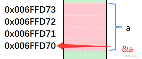 上面的a是整形,占据4个字节,那取地址&a取的就是a的空间内最小的地址
