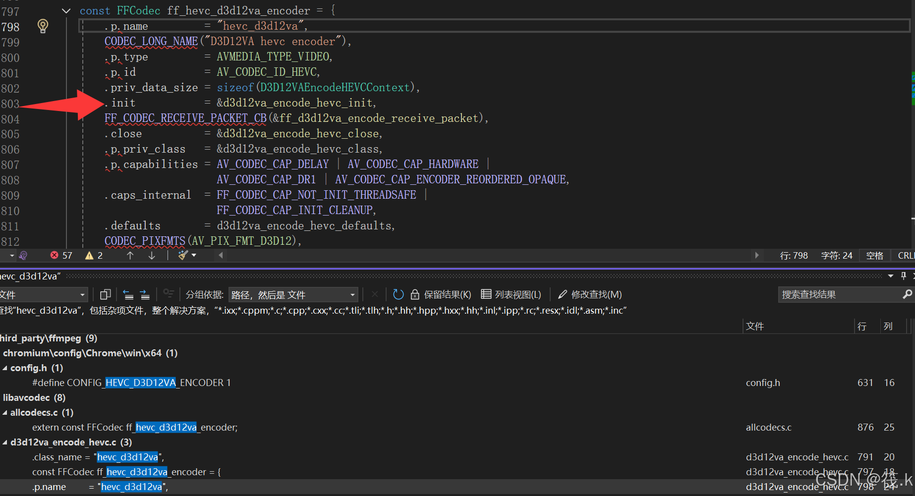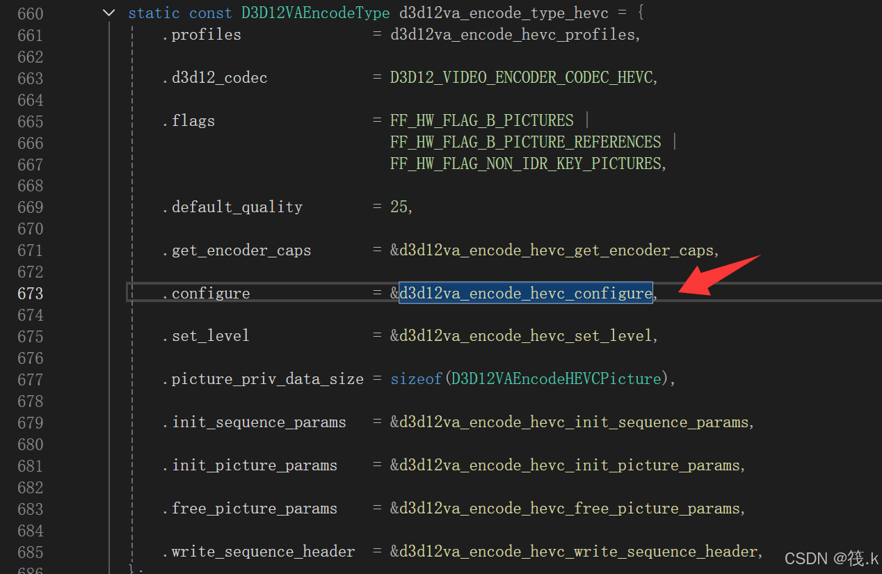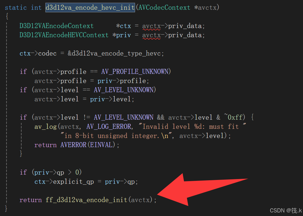 ↓ 找到 API 入口函数 (ff_d3d12va_encode_init)