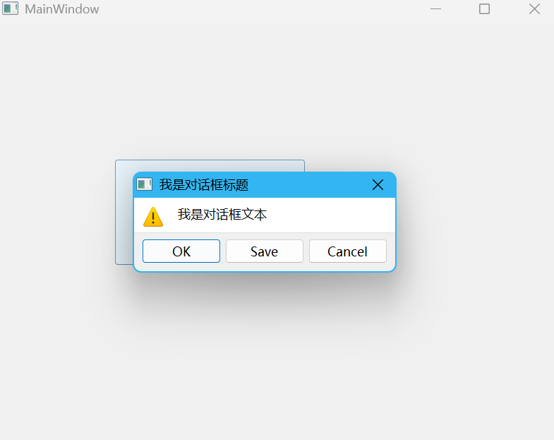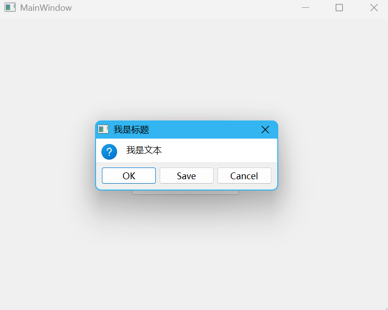 int result = QMessageBox::question(this, "我是标题", "我是文本", QMessageBox::Ok | QMessageBox::Save | QMessageBox::Cancel);