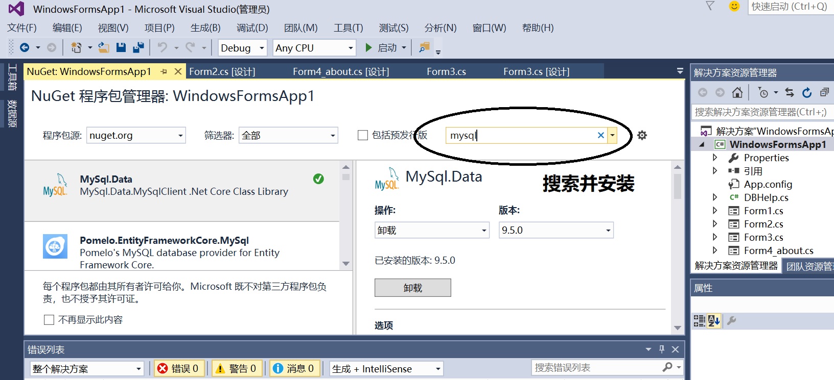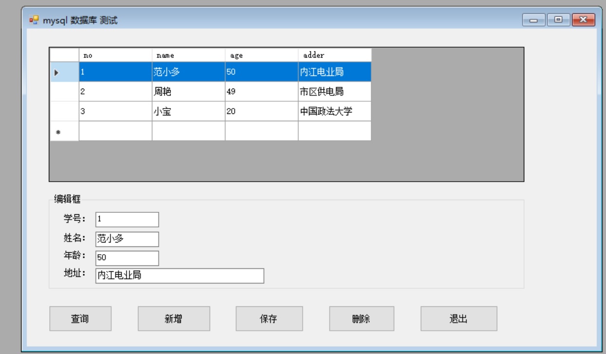 通过一个实例代码,实现c#对mysql数据库的数据录入、保存、修改、删除和数据库事务处理。