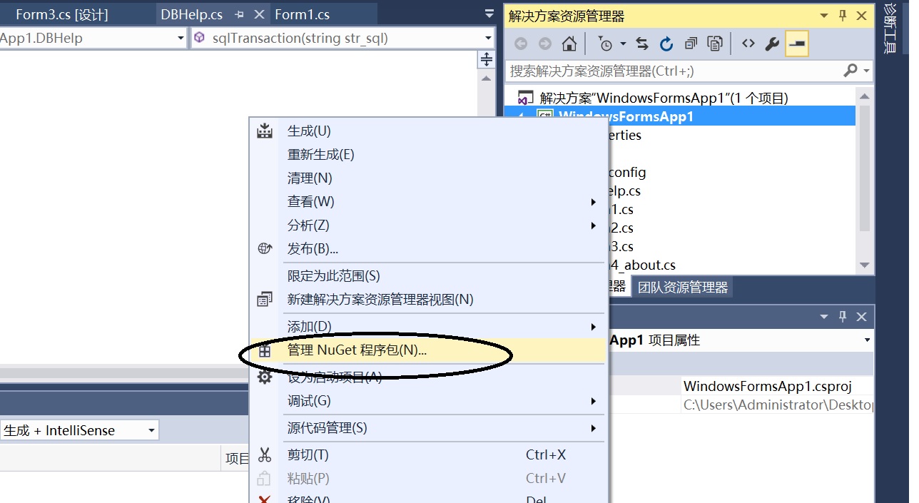 然后在c#中定义mysql数据库访问类DBHelp.cs