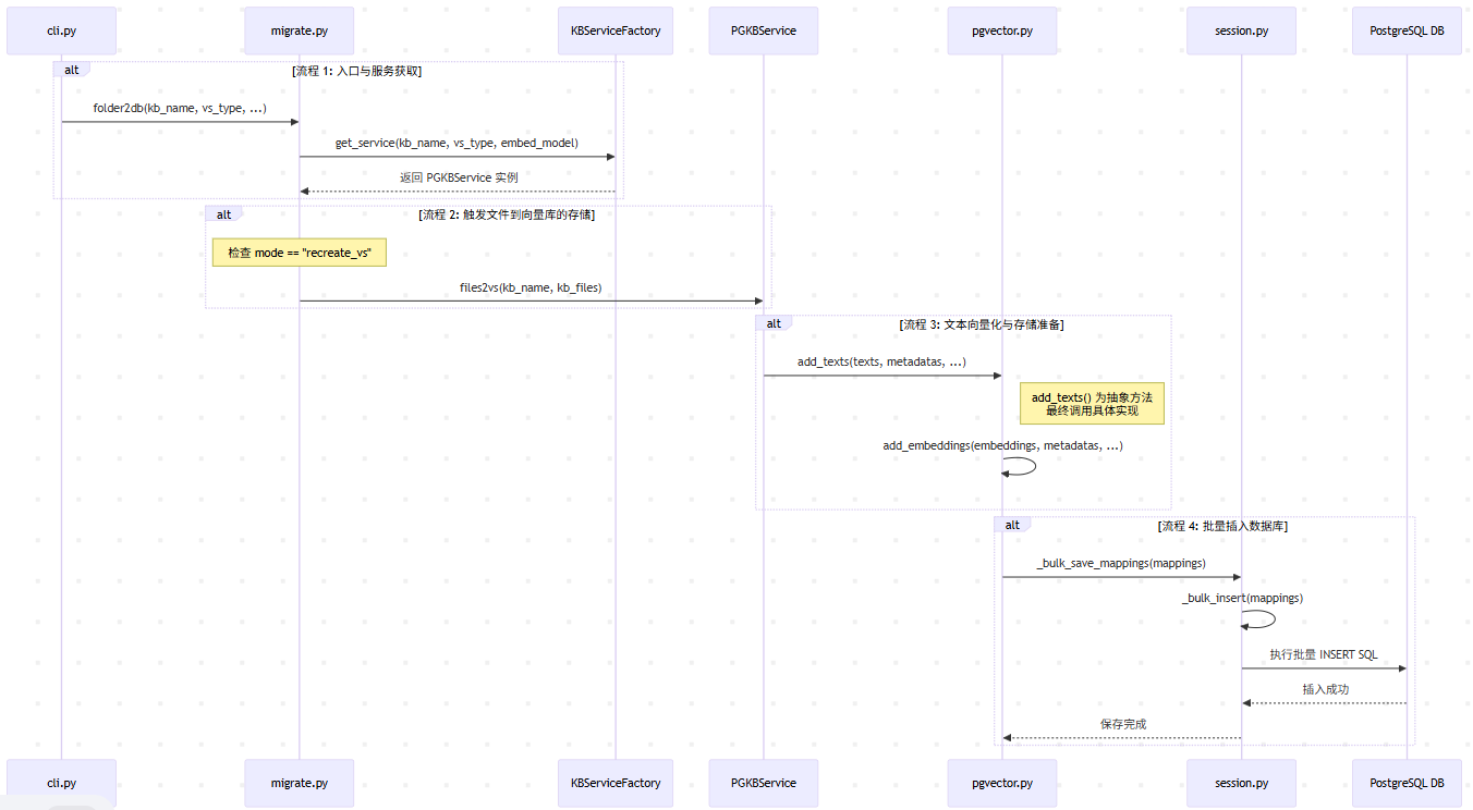 跟踪PG向量库embedding存储,即需要分析: kb --recreate-vs 命令,重新创建向量库以及文本内容加强embedding存储。