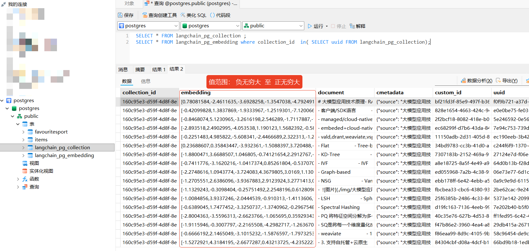 默认配置参数:DistanceStrategy.EUCLIDEAN = "l2" ,最大内积(点积),_embedding值范围为:(负穷大,正无穷大)