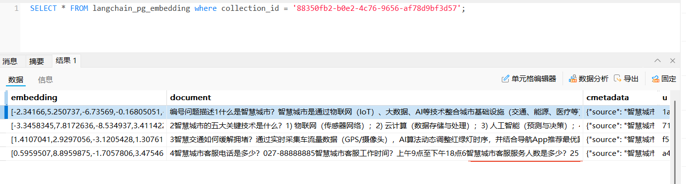 存在的问题: 修改PG库distance_strategy参数后并未改变 文档内容_embedding值范围,不清楚是否是 Pg库问题还是其它问题,等待分析。