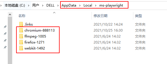 安装时会自动下载浏览器依赖,windows 系统在%USERPROFILE%\AppData\Local\ms-playwright 路径下。