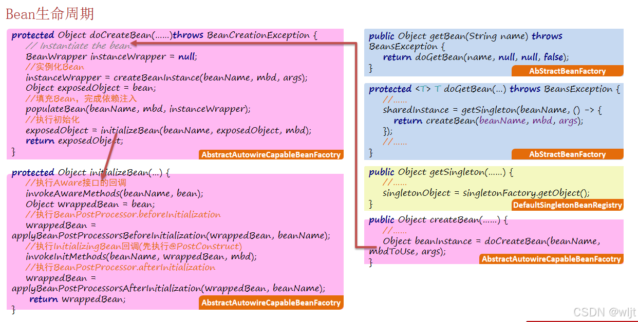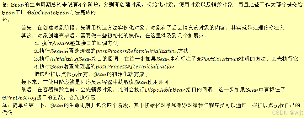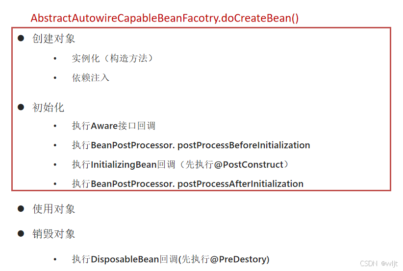 - 销毁接口,当Bean被销毁之前,会回调里面的函数,经常用于做一些释放资源的工作