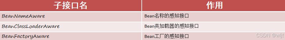 感知接口,Spring提供的一种机制,通过实现该接口,重写方法,可以感知Spring应用程序执行过程中的一些变化。Spring会判断当前的Bean有没有实现Aware接口,如果实现了,会在特定的时机回调接口对应的方法。