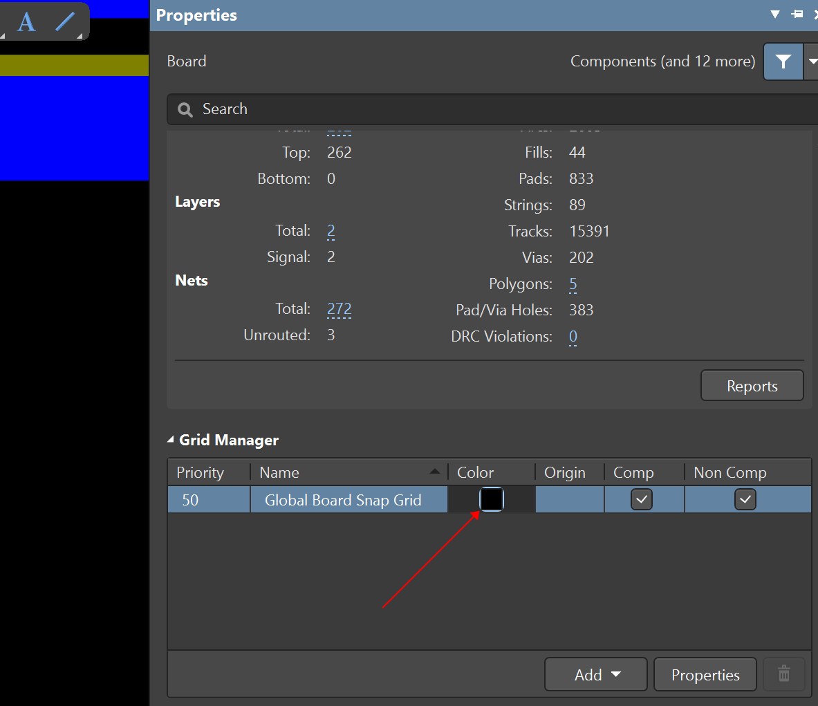 3)、在Board属性中找到Grid Manager,查看"Non Comp"是否打勾,打勾显示栅格,取消打勾不显示栅格,如图3。此处设置直接受1、2两处影响,当1、2两处设置为不显示,在此处勾选了也不会显示栅格。