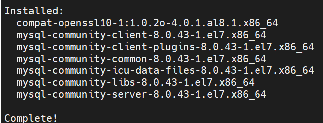 执行这个命令时,yum 会自动从我们刚刚配置好的 MySQL 8.0 源里去查找并安装最新的稳定版。