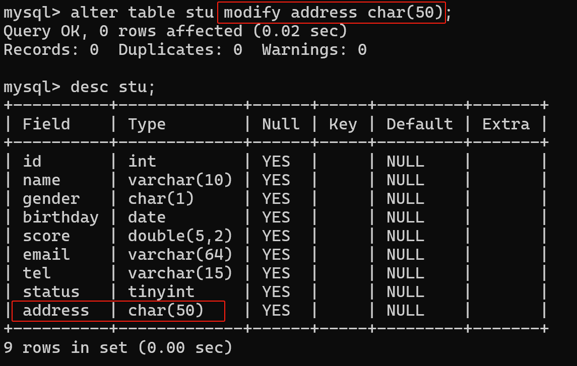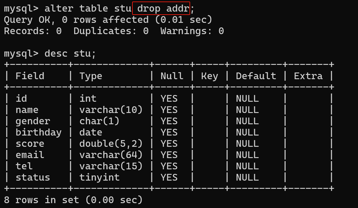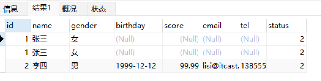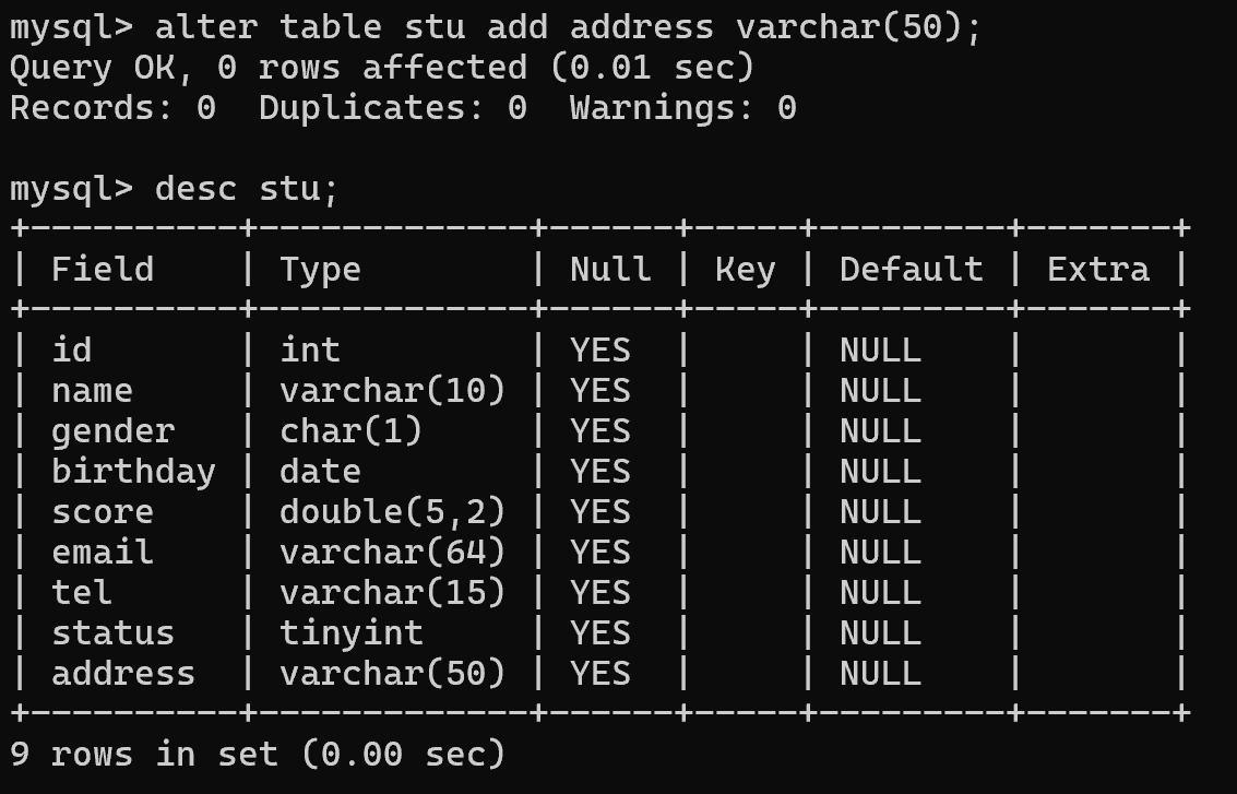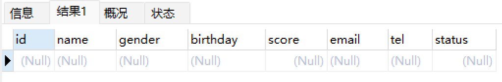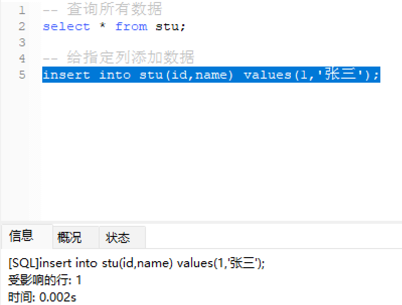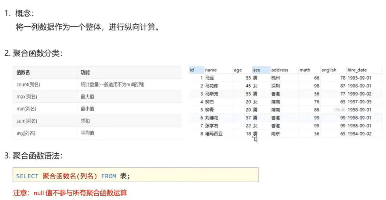 select count(*) from stu; -- 只要该条数据不全为null,就统计在内