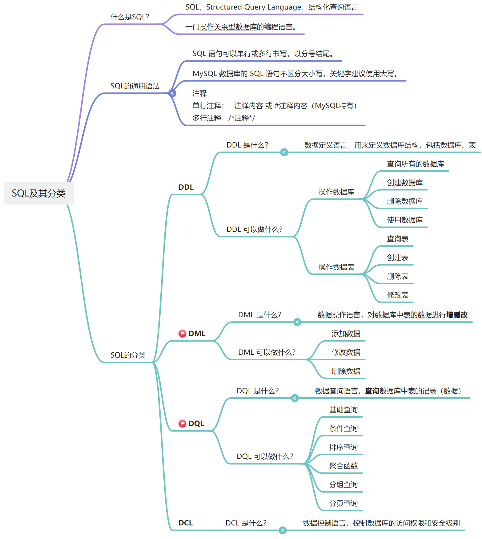 CREATE、ALTER、DROP。- DML(Data Manipulation Language)数据操作语言