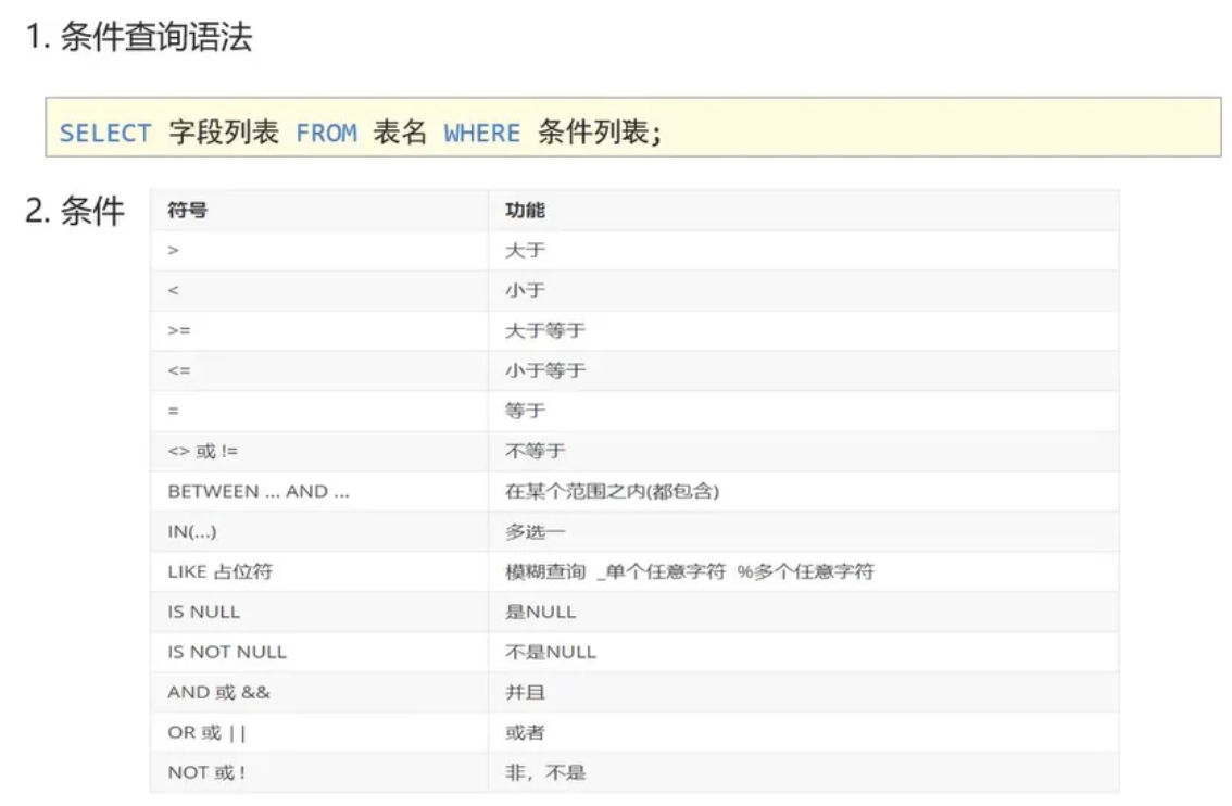 -- 注意:null值的比较不能使用 = 或者 != 比较, 需要使用is 或者 is not