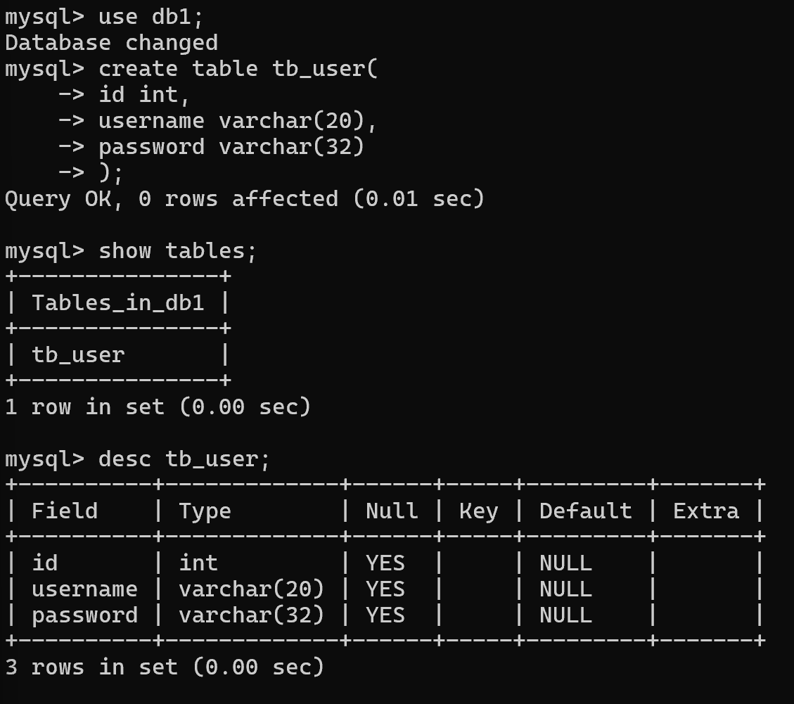 - 用来++定义数据库对象++,比如创建数据库、创建表、删除表等。