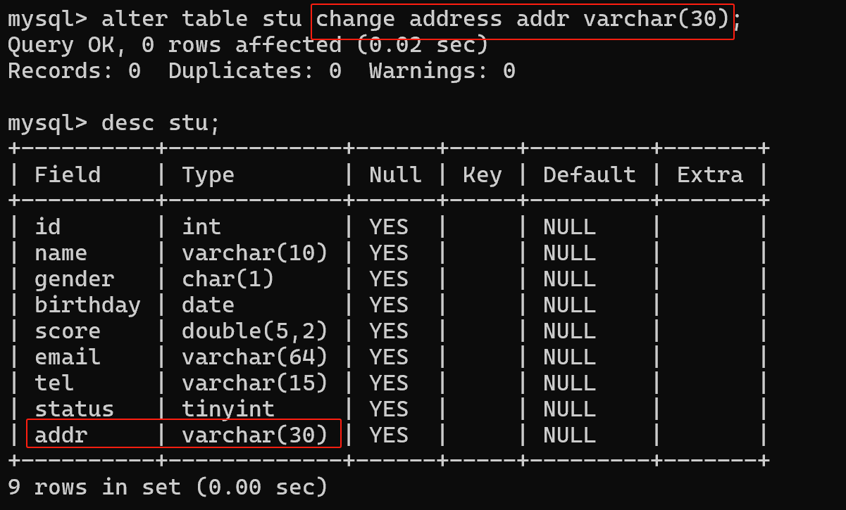 select count(id) from stu; -- COUNT统计的列名不能为null(该列不能有null)