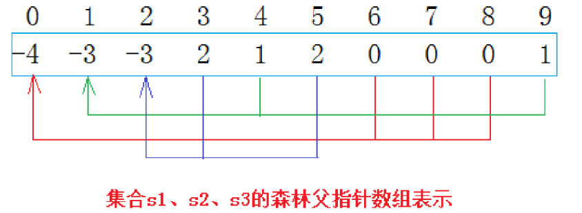 3 .下标对应的值小于零:负号代表这个下标表示根 ,数字代表这个集合中有多少个元素