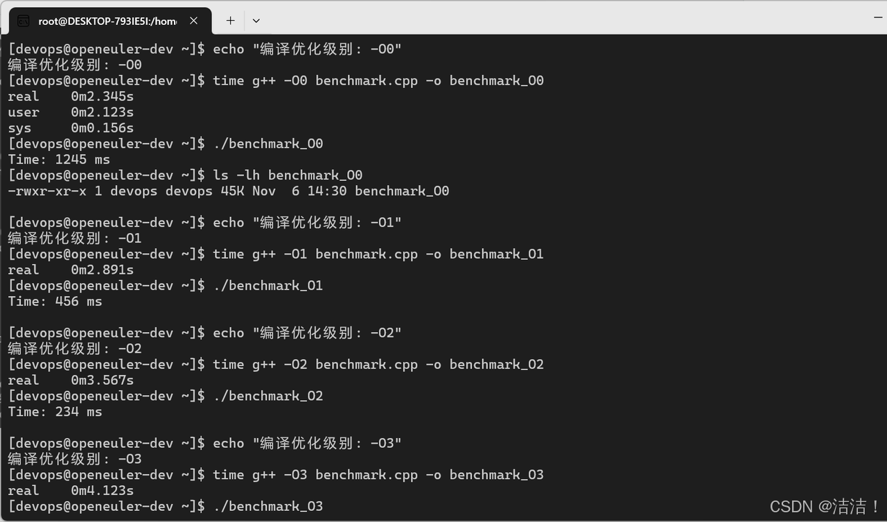 # 测试不同优化级别